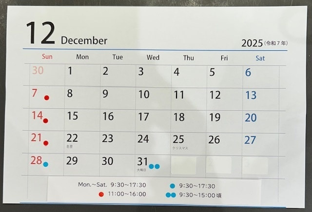 - いつもご利用いただきありがとうございます。店舗移転準備の為、当面の間日曜、祝日をお休みさせていただきます。平日 10:00~17:30日、祝日 休みご不便ををお掛け致しますが、何卒ご理解、ご了承のほどお願い申し上げます。